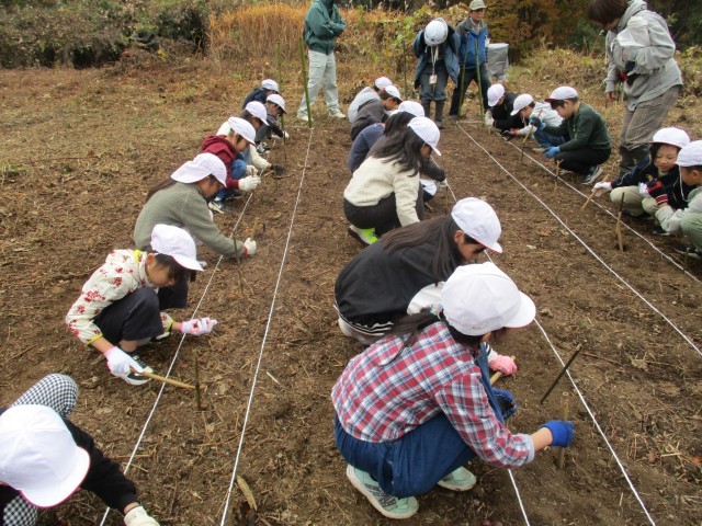 3年生がどんぐり植えを行いました。鶴見川源流ネットの方の