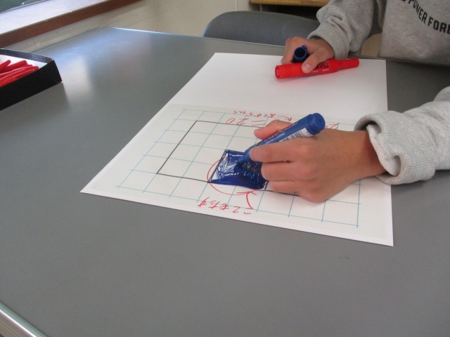 面積を求める学習で、長方形や正方形の面積の求め方を