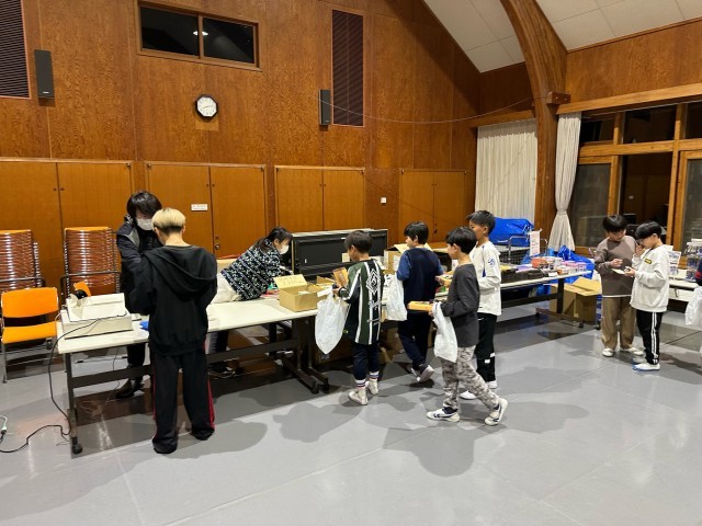 お土産タイムです。宿舎の中のレクリエーションホールが