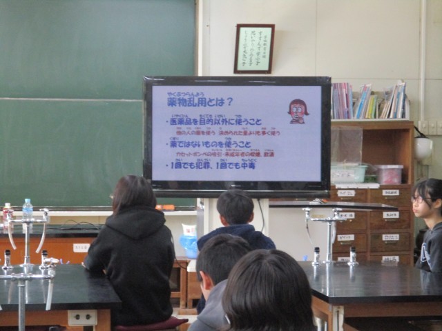 の話の後に、いわゆる危険・違法な薬物についてその危険性を学び