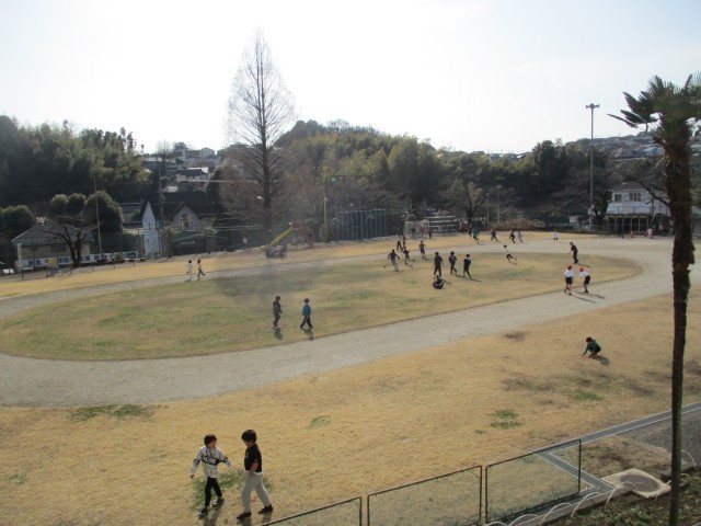 昼休みは暖かく、いつもより多くの児童が校庭で遊んでいました。