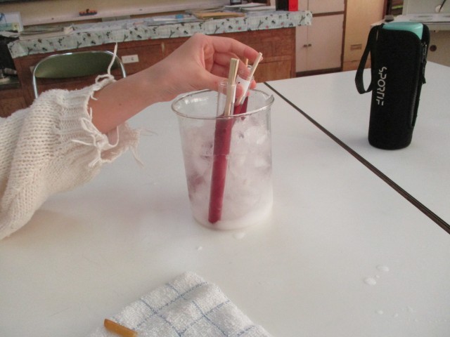 科学・家庭科クラブはアイスキャンディー作りです。ビーカーに