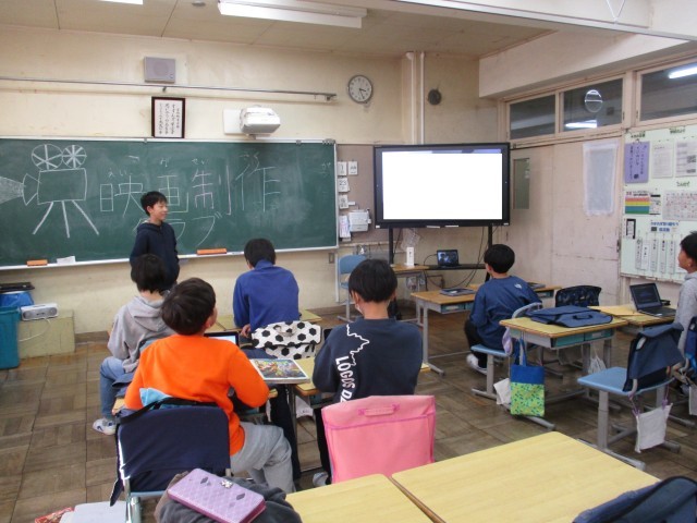 映画クラブでは撮影も終わり、みんなで見合っていました。