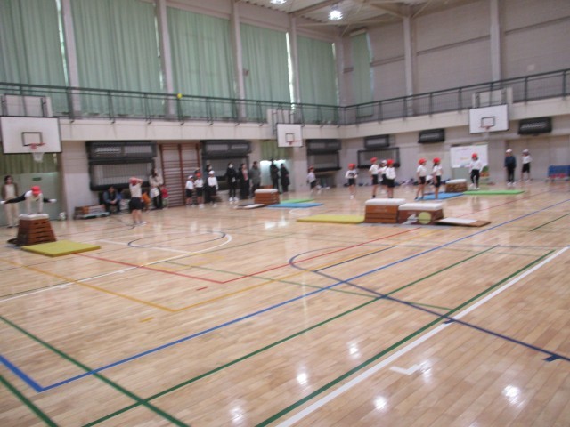 3年生は体育で跳び箱運動で場を設定して一人一人のびのびと体を動かして
