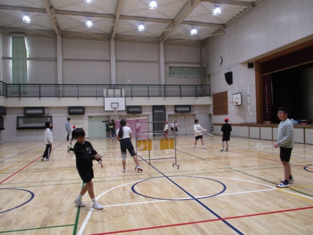 スポーツクラブは体育館でバドミントンに取り組み