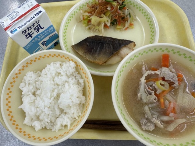 牛乳・ごはん・ホッケの文化干し・パリパリれんこんサラダ・大根のみそ汁