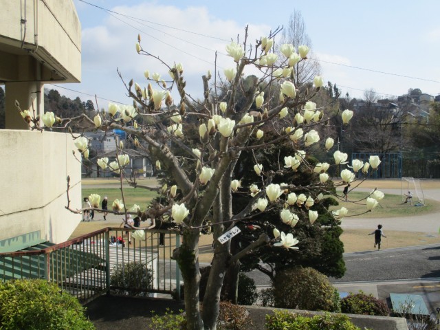 ハクモクレンもほぼ満開です。