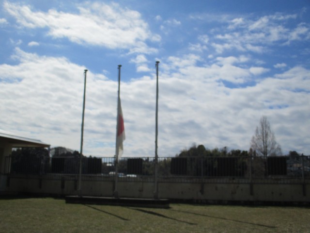 犠牲者に弔意を表すために半期を掲揚しました。お昼の放送