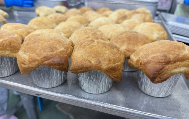 今日は新しい挑戦!「シチューポットパイ」を作りました。カップの中には、いつものクリームシチューが入っています。パイをサクサク崩しながら食べます。