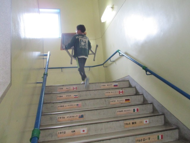 早めに教室準備をします。5年生が4校時まで残り、