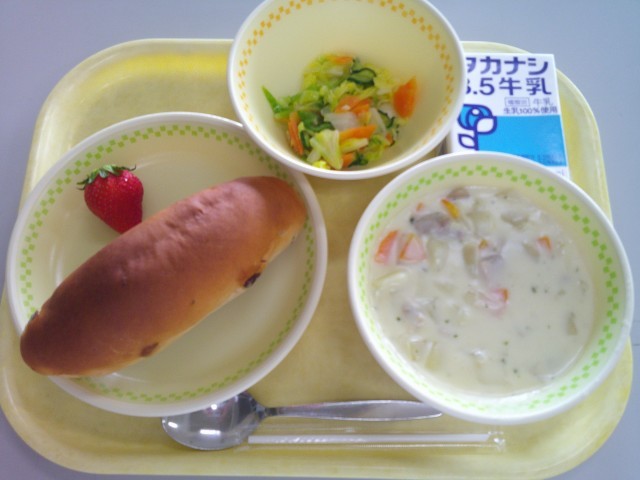 ぶどうパン フレンチサラダ クリームシチュー いちご ぎゅうにゅう
