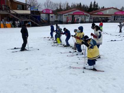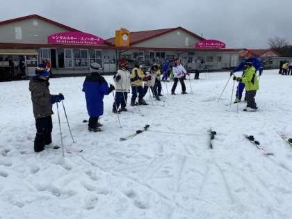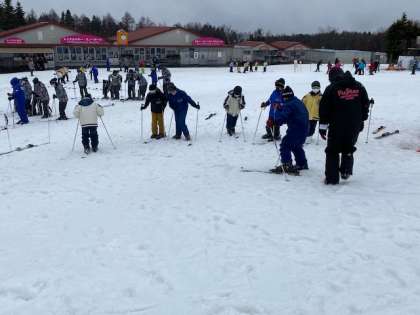 初めて、スキーをする児童もたくさんいます。天気は今ひとつですが、そんなことが気にならないくらい集中しています。