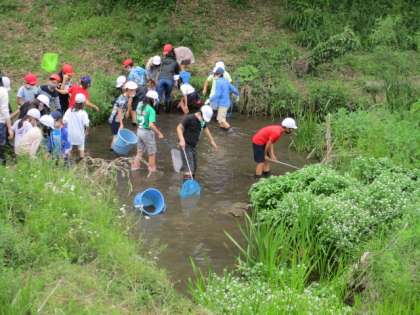 この日は、丸池と呼ばれる場所に行って、川の生き物を観察しました。ここを遊び場にしている子供もいますが、学校の勉強でみんなで訪れるとなると、いつも以上に楽しむことができたようです。