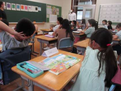 週に1回の外国語活動ですが、回を重ねるごとに子供たちの、英語を聞き取る力が育っていることが伝わってきます。この日は、いつもと違うALTの先生と一緒の授業でした。