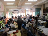 秋の虫を探しています。校庭の芝生は、定期的に手入れをしているので思ったほどいませんでしたが、3階昇降口付近の中庭や校舎裏の草地にはたくさん虫がいたと教えてくれました。