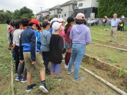 小山田小学校では、どの学年でも小山田の地域にあるものを教材して、地域の皆様のサポートをいただきながら「小山田学習」を進めています。田畑での栽培活動、里山探検、源流域である鶴見川の学習などをはじめ、様々な学習を進めています。