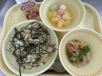 こぎつねごはん ホッケの塩焼き 海藻サラダ 根菜のみそ汁 牛乳