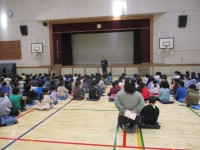 学芸会児童鑑賞日の1日目です。1,3,5年が前半観客2,4,6年が後半の観客で...