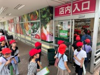 3年生が社会科の学習でスーパー三和に行きました。お客さんの邪魔にならないように...