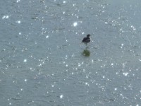 里山に行く途中、プールを見ると鳥が凍ったプールの上を走っていました。 中庭の木...