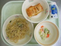 今日のメニューは、【牛乳、◇たけのこごはん、たらの石垣揚げ、◇春キャベツのゆず和え、豆乳飛鳥汁】です。