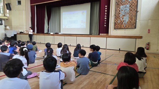 そして、本校にあるきこえの教室の担当教員から、デフリンピックについて紹介をしました。