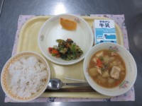 キムタクごはん・スパイシービーンズ・トックスープ・りんご