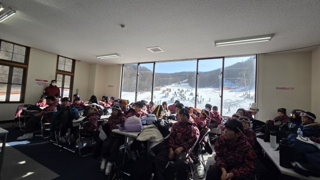 美味しい朝ごはんを食べ、お世話になった宿舎の方々にお礼を言って、スキー場に出発しました。