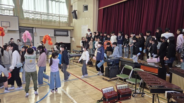 6年生登校するのもあと少し、これまで最高学年として学校をリードしてくれた6年生に感謝の気持を伝えるため、1〜5年生が出し物を披露しました。そのお返しに6年生が迫力のある合奏を聞かせてくれました。