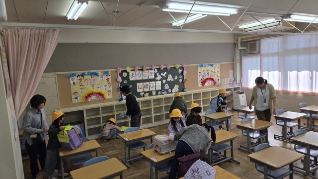 教室では朝の支度について教えてあげ、困っている子にはさっと手伝ってあげています。