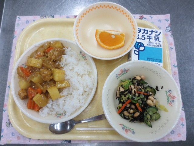 ・牛乳・カレーライス・大豆とひじきのサラダ・甘夏
