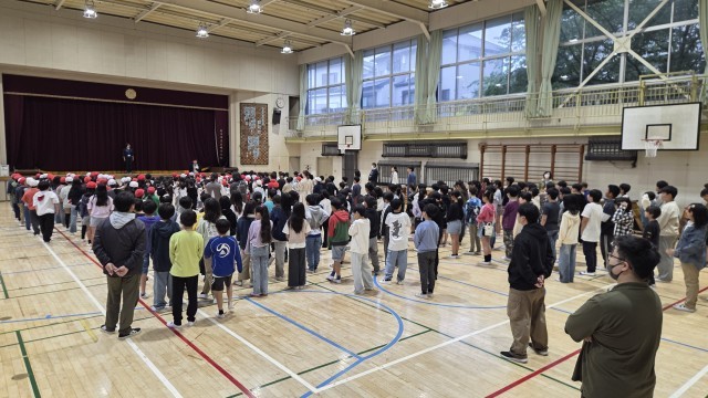 並び方、気をつけや休めの姿勢、まわれ右のしかたなどをみんなで練習しました。