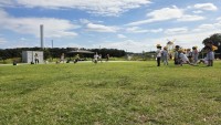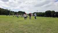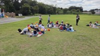 1年生が遠足で忠生スポーツ公園に来ました。およそ40分の道のりを頑張って歩きまし...
