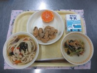 【今日の献立】「運」がつくうどん・春雨サラダ・安倍川さつま・みかん