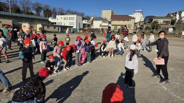 朝から良いお天気です。きれいな澄んだ青空の下、みんなで鬼ごっこをしました。