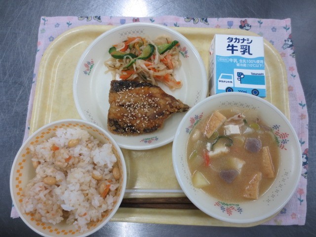 【今日の献立】~節分料理給食~・牛乳・節分ごはん・いわしのかば焼き・はりはり漬け...