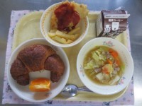 【今日の献立】~イギリス料理給食~・コーヒー牛乳・クロワッサン・フィッシュ&チッ...