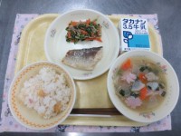 【今日の献立】~進級お祝い給食~・牛乳・ほたて入り桜ごはん・たらの西京焼き・野菜...