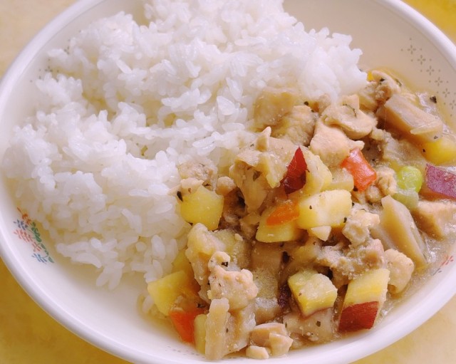 タイの家庭料理「ガパオライス」は、鶏肉をバジルと一緒に炒めた香りのよい一品です。バジルのさわやかな香りが食欲をそそります。レンコンやサツマイモなどの根菜類もたっぷり入った栄養満点の一品です。