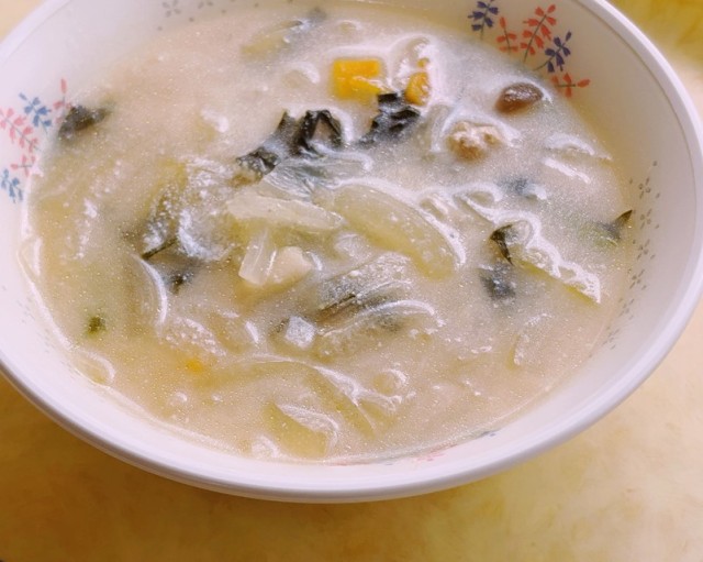 豆乳スープはまろやかで、ガパオのピリッとした味をやさしく包み込みます。