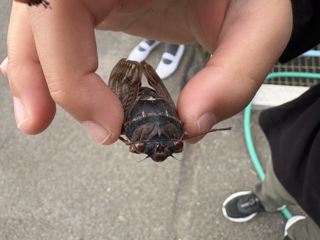 2枚目の写真は登校してきた子が通学路で捕まえてきたちょっと季節外れのセミです。