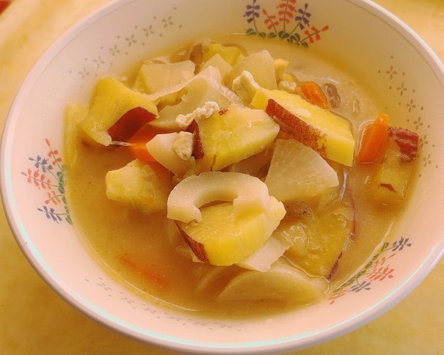 体を温めるさつま汁には、さつまいもや鶏肉など、エネルギー源がぎゅっと詰まっています。