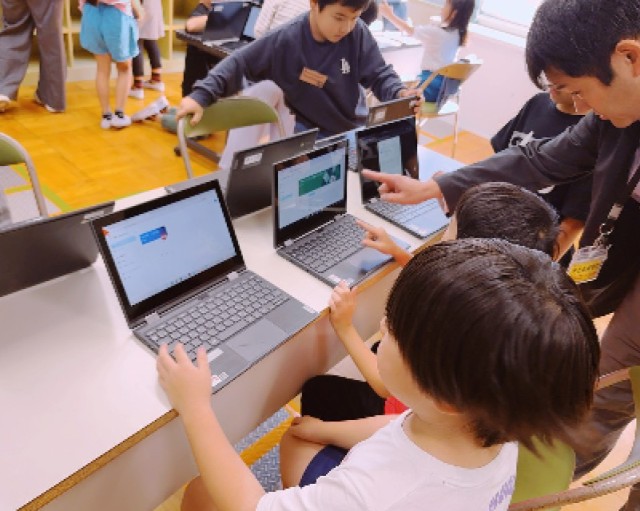 昼休みになると、Chromebookを抱えた子どもたちが次々とPCルームへ。
