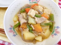 ソース勝つ丼、けんちん汁、白ブドウとほうれん草ジュース