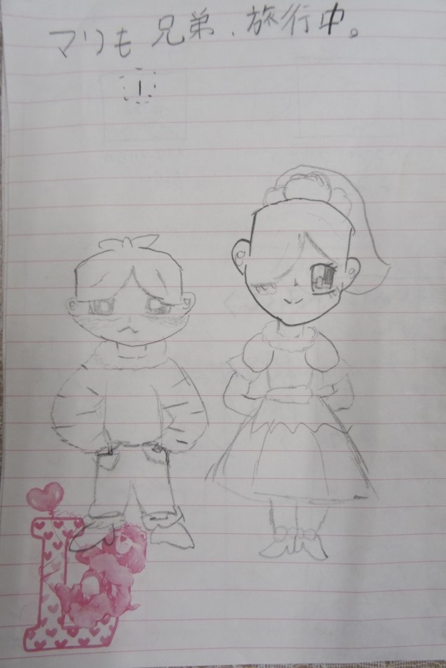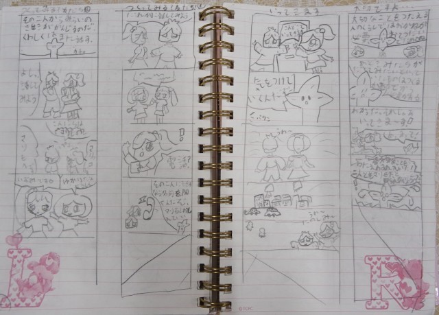 今日は、ある児童が大切にしているノートを校長室に持ってきてくれました。中を開いてみてびっくり。ノート一冊に、びっしりと描かれたオリジナルの4コマ漫画が何十ページも続いているのです。