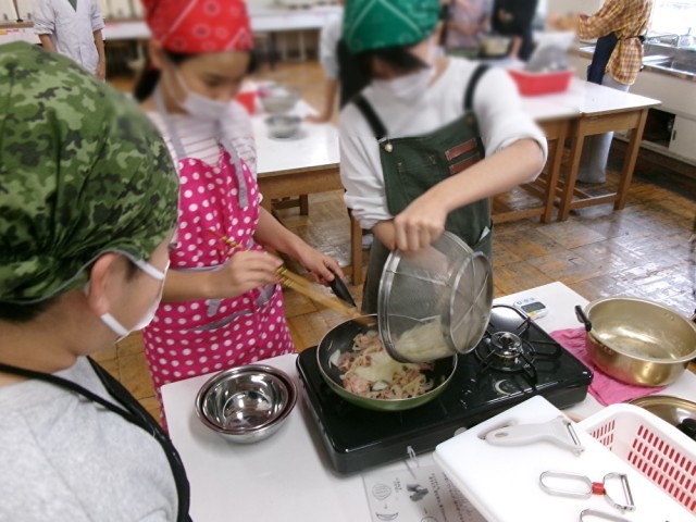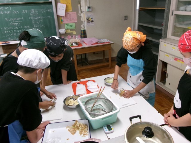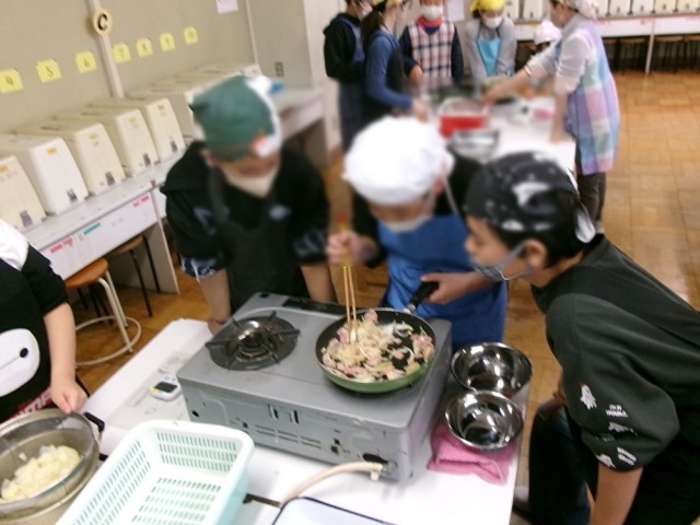 6年3組で調理実習をしました。