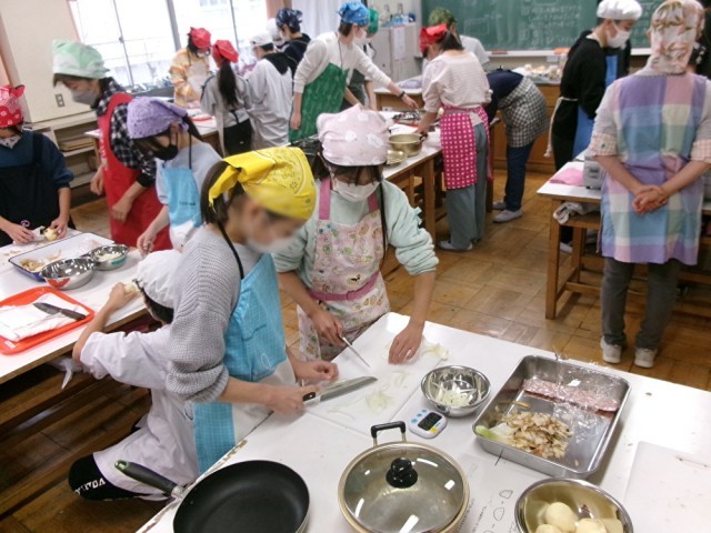 ジャーマンポテトづくりでは、じゃがいもの皮むきや玉ねぎの薄切りがとても上手な児童が多く、普段からお手伝いをしているのかなと感じました。