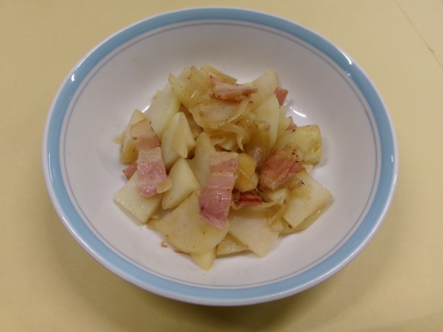 時々ヒヤッとする場面もありましたが、火の通り具合はちょうどよく、とてもおいしいジャーマンポテトが完成しました。