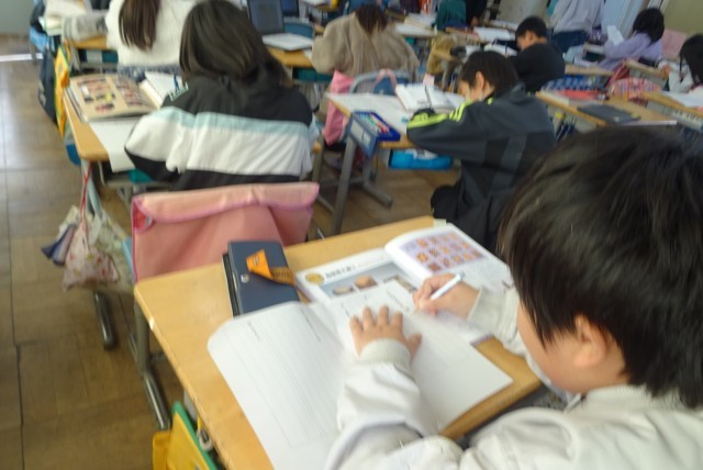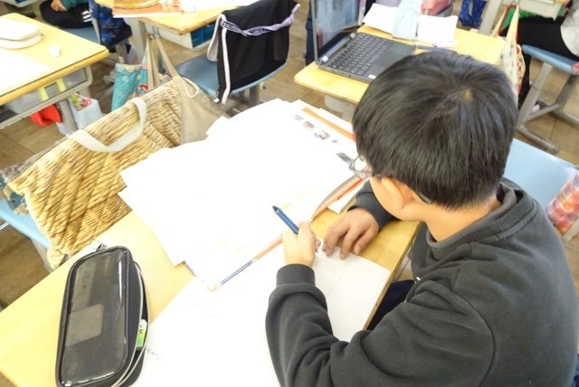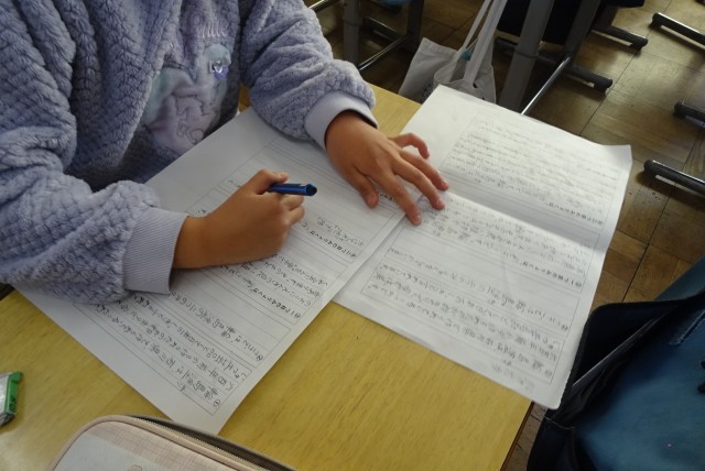 「未来につなぐ伝統工芸品」という説明文を学習した後に、全国の伝統工芸品の中から自分で選んだものを調べ、分かったことや考えを整理して文章づくりに取り組んでいます。