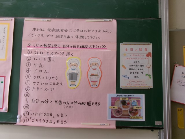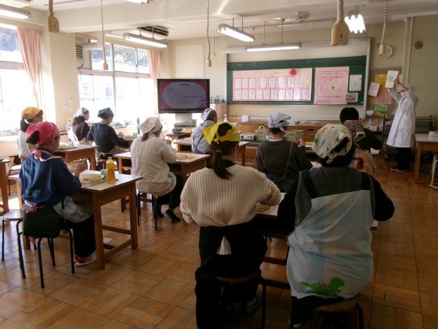 まずは学校給食についての説明を聞いて、その後はいよいよ試食タイム。